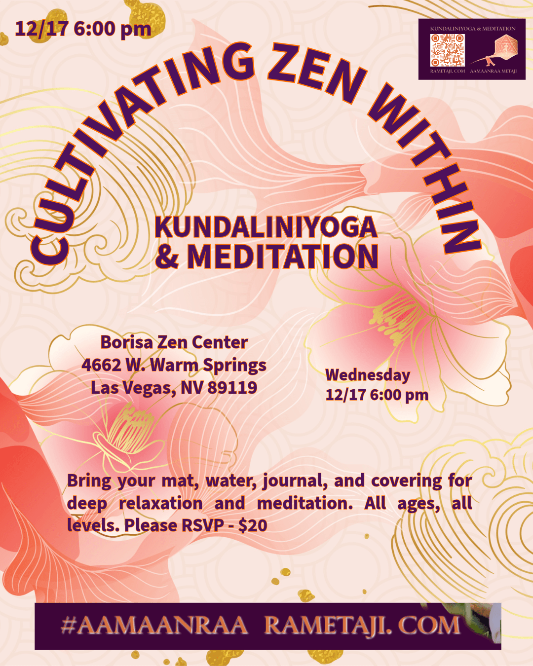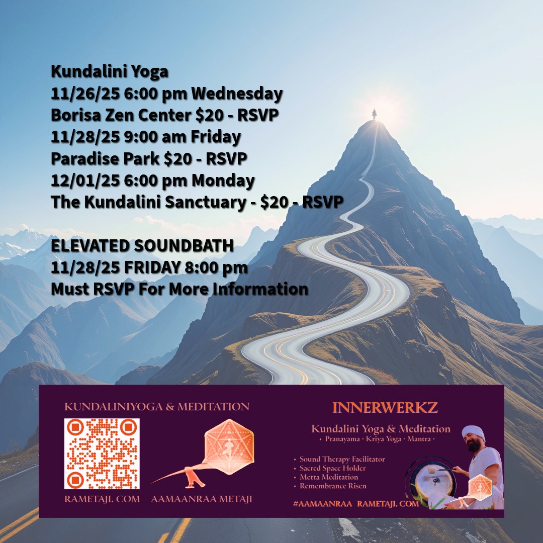 Join me this 09/17/25 – Wednesdayevening for Kundaliniyoga and Meditation at the Borisa Zen Center. Doors open at 5:45, I’ll be waiting patiently for all you yogis. We will all enter together with our shoes off.